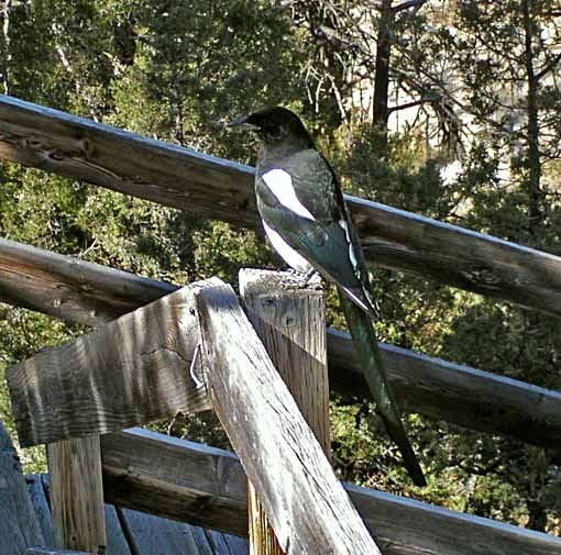 In one shady part of the boardwalk path I finally got a picture of a Magpie. Not a great one as his head was in shadow, but you can see how handsome they are.
