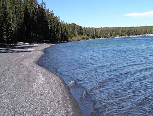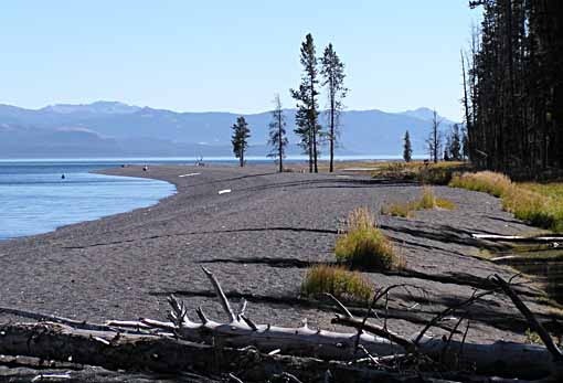 We stopped for a picnic lunch on the shore of Yellowstone Lake, where the sand is dark gray.