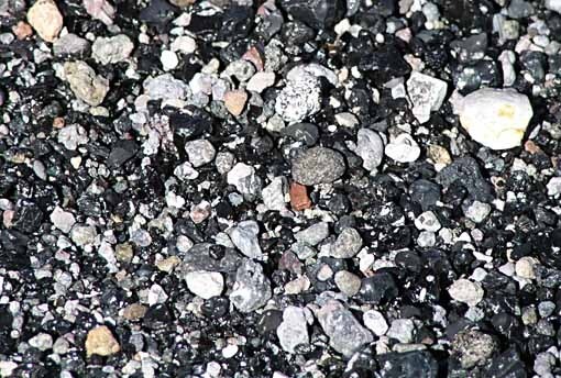 A close look shows why: much of it is volcanic rock, either gray pumice or shiny black obsidian.