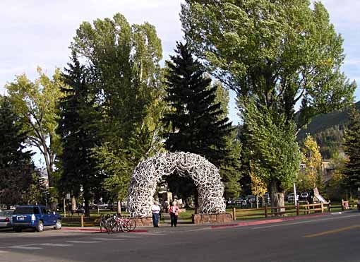 Elk antlers! Elk gather in large grasslands just north of town in the winter, shedding their antlers, and in the spring Boy Scouts collect them and sell them to raise money for their activities. We saw other antler structures around town, a bizarre sculpture medium.