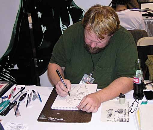 Here's Adam Hughes doing a cool con sketch for someone. Lots of artists were sketching…