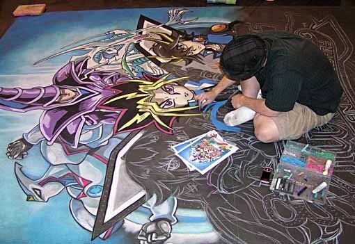 It was lunchtime, so I headed to the lobby, passing this impressive piece of chalk art in progress. The show is also an anime festival, and while I'm not into that, there was plenty of manga art to see and buy, manga artists to meet, and manga publishers, costume vendors and so on mixed among the comics booths. Downstairs there's a food court with what looked like good vendors, but also very long lines, so I decided to walk outside to find a place for lunch.