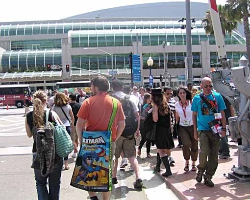 Back in my room for a late afternoon break before going out again to dinner and the Eisner Awards. I've got half an hour to post, so I'll begin Friday now, and put the rest up tomorrow morning. I took the Con shuttle bus down from my hotel today, saving my feet for the miles I'd be walking later. A bit slow, but it gets you there fine.