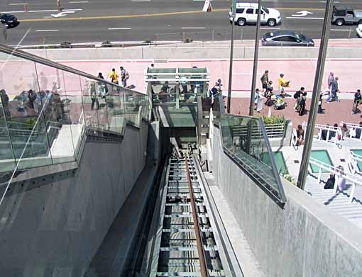 Saturday afternoon, taking a break from the Exhibit Hall floor, I explored the upper levels of the newest part of the convention center, an area I hadn't been in before. To get there, on a whim, I took the outside elevator that climbs at an angle beside the two stories of stairs. Kind of fun, but meant for wheelchair and disabled access, really.