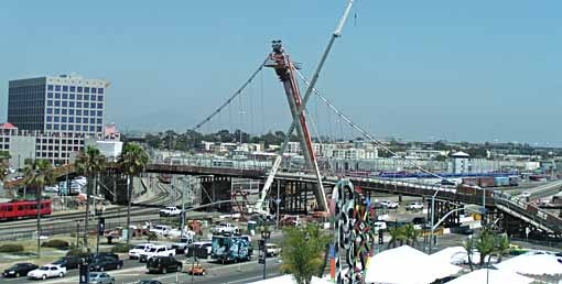 Looking out the windows toward the east end of the convention center, I saw they're building a small suspension bridge for people connecting Petco...