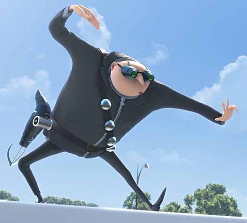Steve Carell does a great job with the purposely funny eastern European accent for Mr. Gru, the previously successful but now aging super-villain shown above, and all the voices are good. I didn't recognize Julie Andrews as Gru's mother.