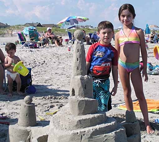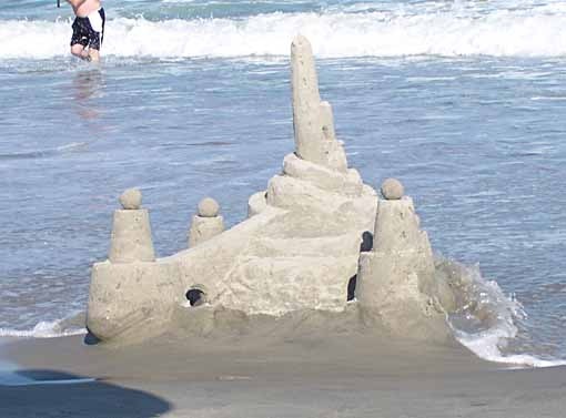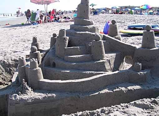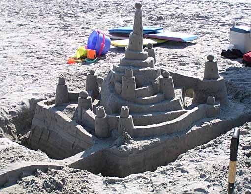 My brother Doug and I made this one Sunday, a perfect beach day, with some help from Ellen, niece Haley and nephew Charlie. I planned it and did the central section, Doug did some of the outer towers, Ellen and Haley did the front gate, Charlie helped with the moat.