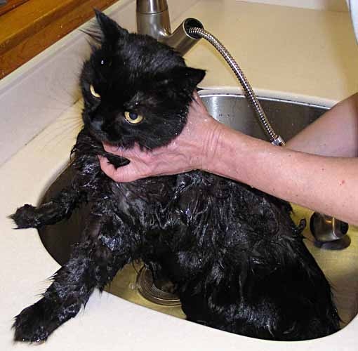 Every summer around this time Ellen bathes any and all cats in the house, whether they like it or not, and they never do. The main reason is it removes a lot of cat dander, dried saliva, excess hair, and other stuff that some people are allergic to, and in each group of summer visitors we get, there's at least one person allergic to cats. We didn't get to it in time for my sister-in-law Lena this year, but Ellen's sister Ann is coming in August, and she's very allergic.