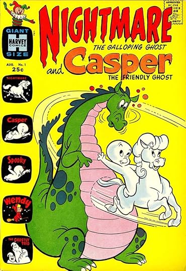 This is a spinoff I like, and shown for the new trade dress by Pirkola with the TV-shaped character boxes running down the left side. This kind of anticipates what DC Comics would do with many of their annuals. Nightmare’s logo is a nice variation on Casper’s.