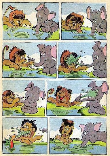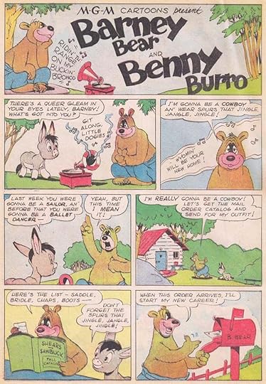 Early in his time at Western, Carl also created a series of stories about these MGM characters. Perhaps for variety, the lettering is all slanted. I love the music lettering, and the catalog name at lower left.