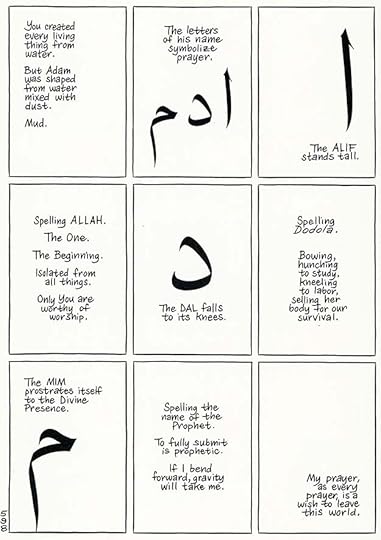 More recently, sections of this large graphic novel by Craig Thompson include instructional sequences that are all lettering and calligraphy, also by writer/artist Thompson. In this case, the design and layout are as important as the text.