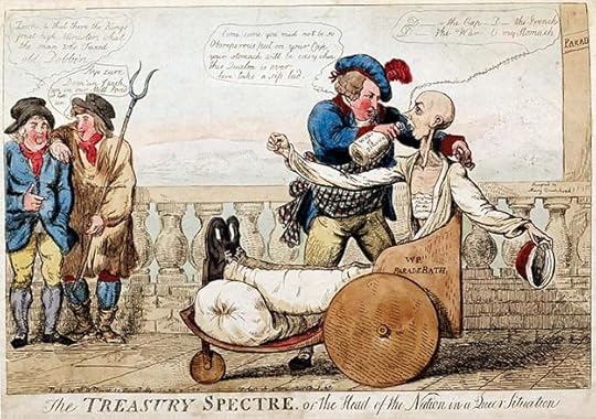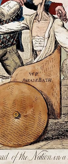 Engraving on metal began to appear in Europe in the 1400s in jewelry-making. By the 1700s it was being used in printing. Lines are cut in a sheet of metal, usually copper at first, later steel, with sharp tools called burins. The finished image is covered with a viscous black ink, then wiped off with a rag leaving ink in all the incised areas. Slightly moistened paper is pressed onto the inked plate in a press, transferring the ink to the paper. Several hundred copies of an engraved image can be made this way, more with steel plates. By the end of the 18th century, this form of print-making, easier than cutting woodblocks, was being used by artists to create satirical and political cartoons like the one above by Isaac Cruikshank.