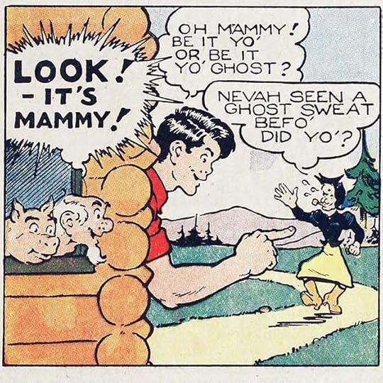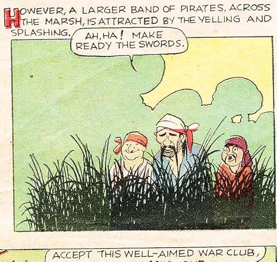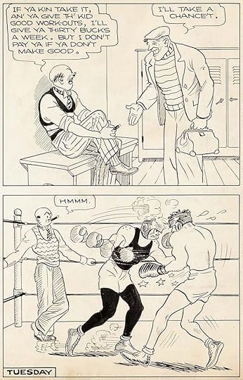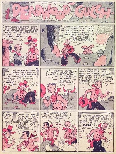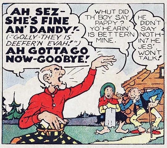The only creator name I recognize in that first issue of THE FUNNIES is Boody Rogers, a cartoonist with a humorous style who assisted others on newspaper strips until he launched his own, Sparky Watts, in 1940. Above is a sample of Rogers’ work from a later Dell comic. He did his own lettering, which I think looks good. THE FUNNIES ran 36 issues, sometimes weekly, in 1929 and 1930, but doesn’t seem to have caught on with readers, or perhaps The Great Depression did it in.