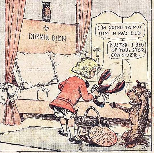 Even more remarkable is this strip where the character Flip is knocking down letters from the title, using a piece of the bottom panel border, both things usually assumed by readers to be unseen by those in the comic. Nemo and his friends have been closed out of a banquet hall, and Flip decides to try eating title letters instead. “Oh! Flip! You’re spoiling the drawing!” Nemo exclaims. Flip replies, “Why don’t the artist feed us then? Oh! This is great! Try it!” McCay’s idea is funny and brilliant, suggesting that elements of lettering and borders can become tools, props and even food for the characters in a meta way that breaks through the assumptions of the reader, presenting a completely new understanding of how comics can work. In this, as in many things, Winsor McCay was ahead of his time.