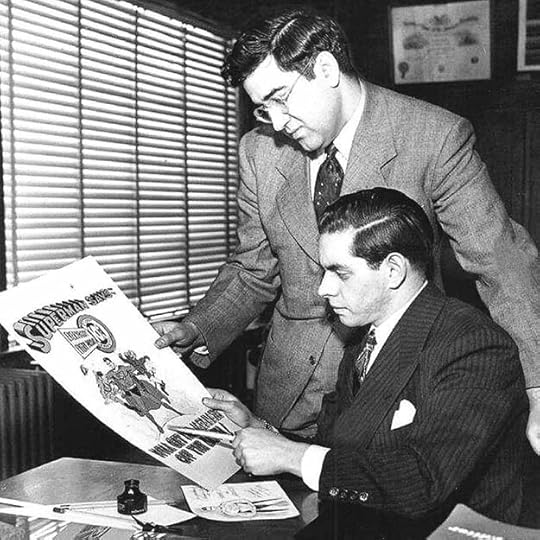 Jerome “Jerry” Siegel was born October 17, 1914 in Cleveland Ohio. Joseph “Joe” Shuster was born July 10, 1914 in Toronto, Canada. In 1924 his family moved to Cleveland where Joe met Jerry in high school and the teenagers began their long collaboration, beginning with a science fiction fanzine. Siegel and Shuster first prepared Superman as a comic strip and tried for several years to sell it that way before turning to comic books as a last resort. Meanwhile, starting in 1935, they had become regular contributors to the comics of Major Malcolm Wheeler-Nicholson with features they created like Doctor Occult and Federal Men. Siegel wrote the stories and Shuster did the art, but they had a hard time making a living at it, until the success of Superman. That meant the lettering was probably all done by Joe Shuster.