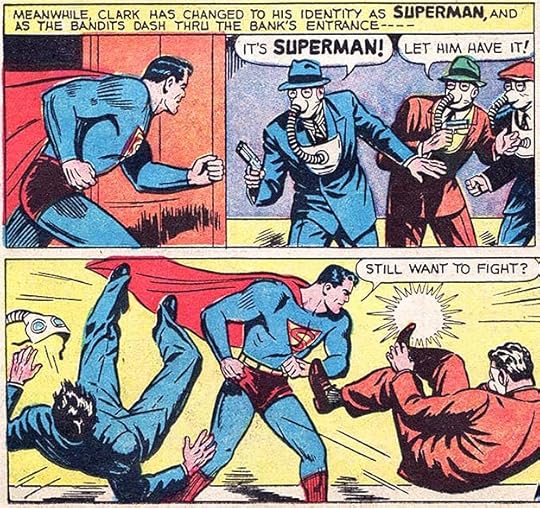 Here’s a sample of Joe Shuster’s lettering, pretty standard for the time, easy to read, and effective enough, but nothing special.