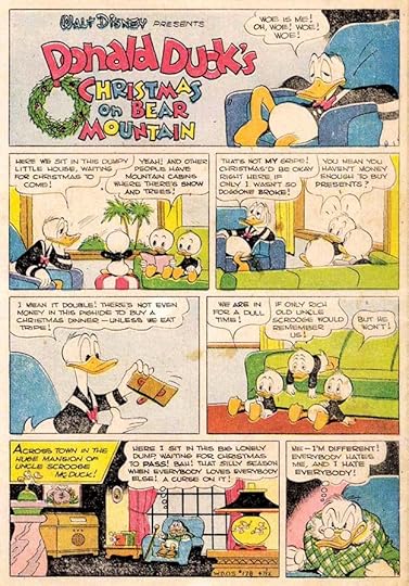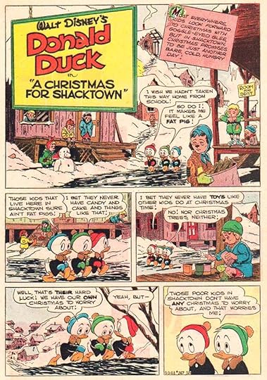This well-loved story has a fine Barks title and decorative first caption. In it, many of Carl’s characters, including Uncle Scrooge and Gladstone Gander, join in a true Christmas story where Scrooge becomes generous despite himself.