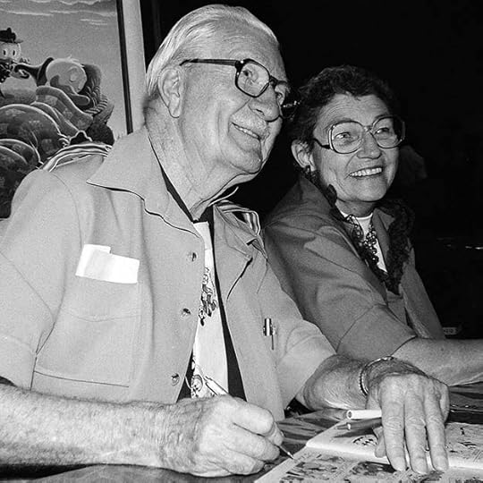 Margaret (Garé) Wynnfred Williams was born December 6, 1917 in Hilo, Hawaii. After Carl Barks divorced his second wife Clara in 1951, he met Garé, an accomplished painter, and they married in 1954. By that time she had been assisting him with lettering and background inking for a year or so.