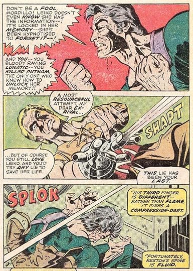 Here the title and credit lettering is almost part of the story, and I also like the understated but still larger BLAM at upper left.