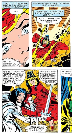 Joe’s lettering was soon being seen in many Marvel titles. Here he makes a little more room for art by overlapping his balloons across the panel breaks.
