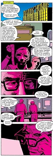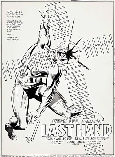 With Frank Miller also writing, the balloon placements became a thing of beauty, choreographed perfectly to help tell the story. Here they lead the reader down a vertical stack of panels by careful overlapping.