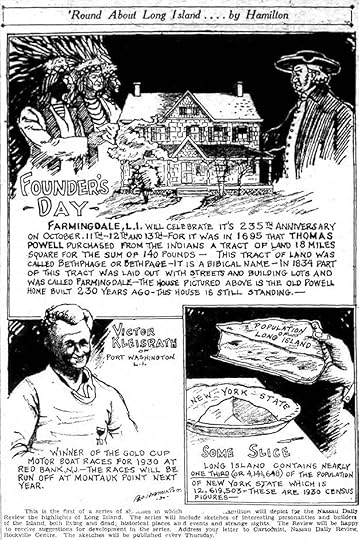 Alex Jay found examples of his cartooning in a small Long Island paper, a weekly strip along the lines of Ripley’s Believe It Or Not, but focused on local history and personalities. The first one is above, it continued at least into 1931. Both the art and lettering are on the rough side, but the strip worked well enough to run for a while. I don’t know what other cartooning Ed might have been doing, but this is prime practice for lettering comics.