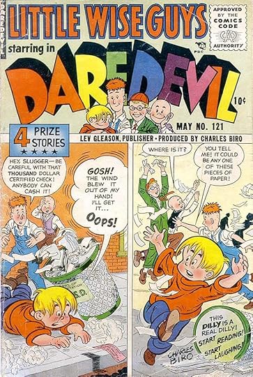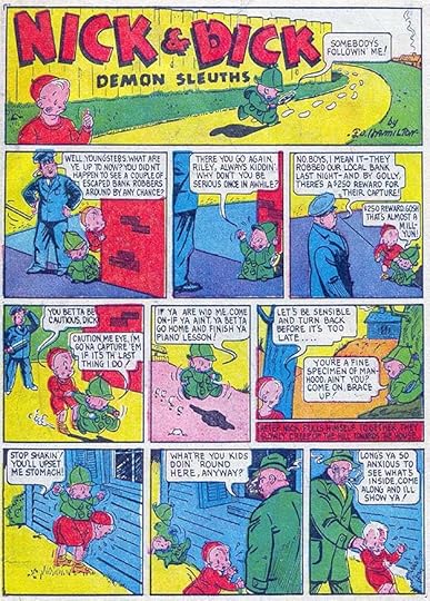 I love the newspaper lettering on this cover, and all the Art Deco extras behind it. The Little Wise Guys are taking a more prominent role.