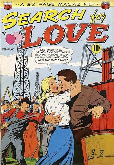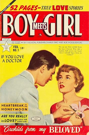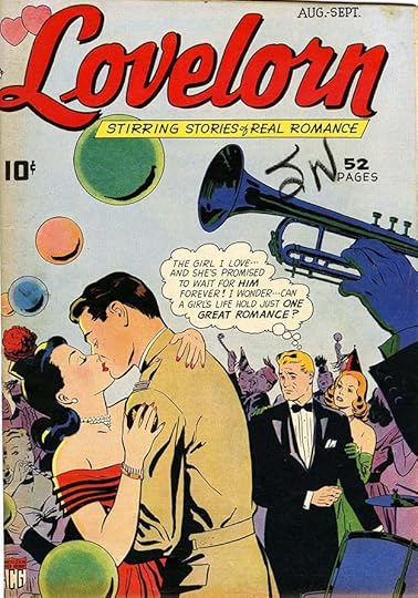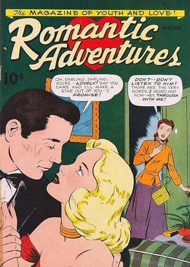 MOON GIRL changed to this romance title for a few issues before ending, and the logo again looks like early work by Feldstein. The title is too long and awkward, but he does pretty well with it anyway. ROMANCE has similar style points to LOVE in the cover above. But things were about to change at EC, with existing titles becoming horror ones in early 1950. Numbering often continued to preserve second-class mailing permits.
