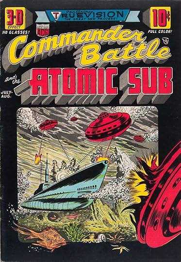 Another ACG title that skirts the edges of war comics, and I think their only attempt to join the fad for 3D, though it wasn’t really that, just drawn with lots of depth, and kind of a cheat. Ed Hamilton’s logo and cover lettering with deep telescoping is effective and uses gray tones well.