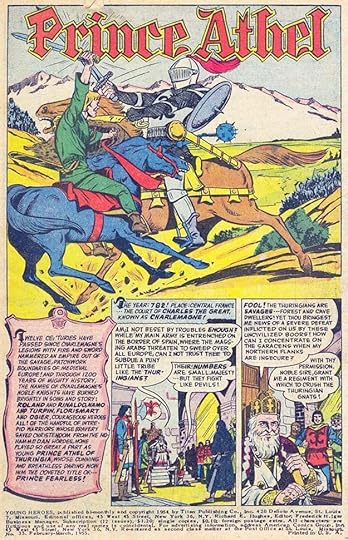 Armed combat in the style of Hal Foster’s Prince Valiant was the theme of this book and cover, and the logo is the best of the New Direction titles in my opinion. Feldstein had to look no further than Valiant for inspiration, but his logo, top line, and banner caption are all excellent work.