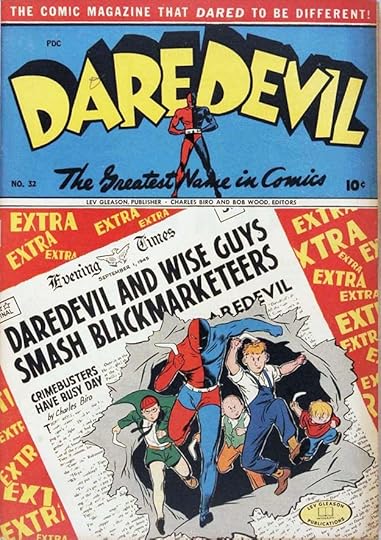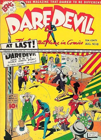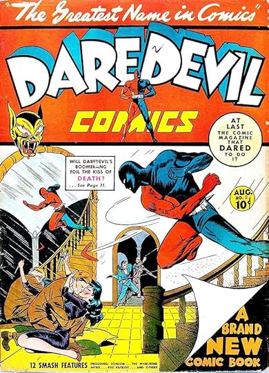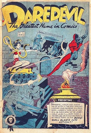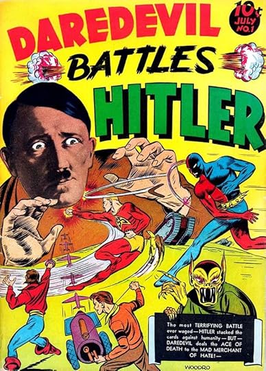 The photo of Hitler is one selling point, but the logo also sells it, though it’s a bit of a mixed bag graphically. The existing characters Daredevil and Silver Streak had appeared earlier in other Gleason titles, but this one, anticipating America’s involvement in World War Two like CAPTAIN AMERICA #1, was a big seller, and launched Daredevil’s own series by Biro and Wood.