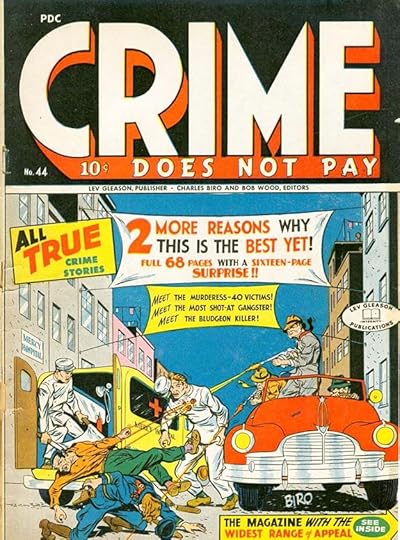 Biro and Wood’s crime comics were violent, and I’m sure hated by parents, though they did not reach the level of gore later found in EC Comics. Biro’s over-the-top captions make it all sound like fun, don’t they? More about Biro’s writing from Irv Watanabe: