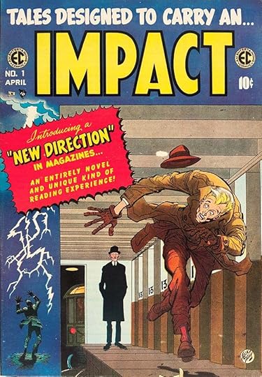 EC had been using the word impact in other places, here it seems to stand in for drama and action. The story featured on the cover, “Master Race,” was one of EC’s best and most celebrated. Written by Gaines and Feldstein with art by Bernard Krigstein, it’s about a World War Two Holocaust survivor. While the cover by Jack Davis is intriguing, the book’s title is perhaps intentionally vague, and the logo by Feldstein is slightly similar to Harvey Kurtzman’s MAD logo.