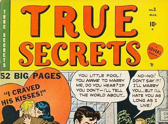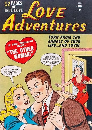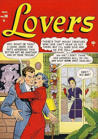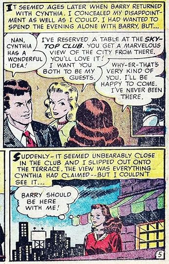 Perhaps the romance logo areas were intentionally kept spare as a style choice, a contrast from the busy crime and horror comics. This logo works fine. The captions are type, but I think Simek did the balloons.