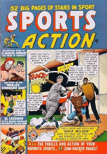 If ever a Marvel title was tailor made for Artie Simek, the avid baseball fan and former player, this is it, though the first issue (called simply SPORTS STARS) and the second don’t seem to have his logos on them. This cover lettering and logo are certainly his work. The speed lines and shading on ACTION work well to add motion.