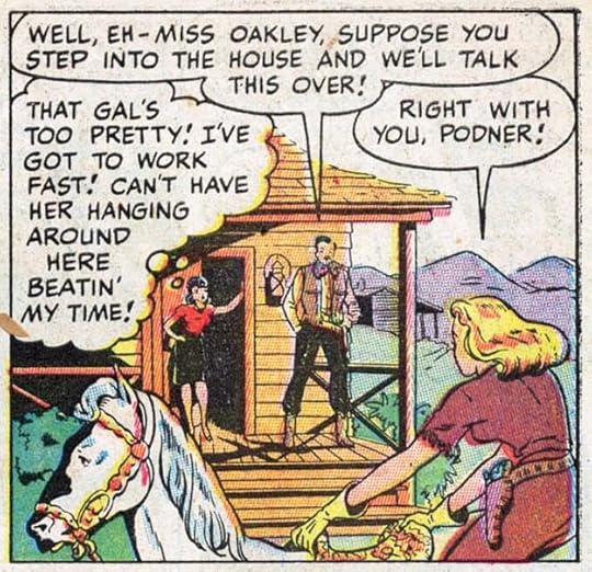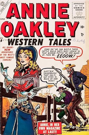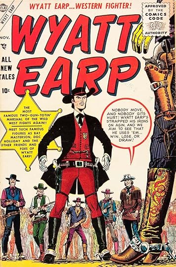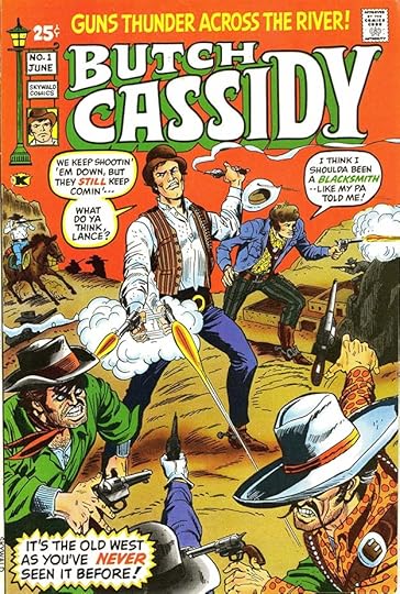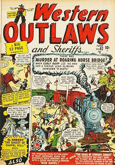 Actual heroes and villains of the old west were fair game for any comics publisher, seeing that their stories and names were not trademarked. This cover has an unusual perfectly round balloon from Artie, and I also like the badge caption, though it’s filled with type.