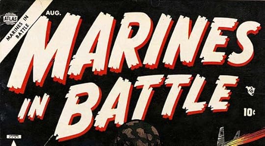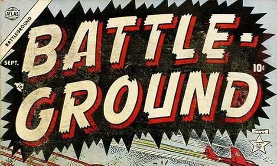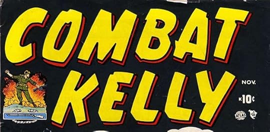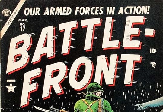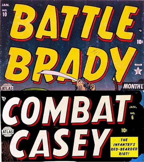 I really like the aggressive, wide, square-ended strokes of this logo, and the way each letter is tipped to the right rather than just slanted. It’s a good look for a war title. Note the small symbol ATLAS after the Y. This stands for Atlas News Company, Martin Goodman’s own distribution arm, and it appeared on all his comics going forward for some years. Because of that, the company became known as Atlas, though that was never an official name.