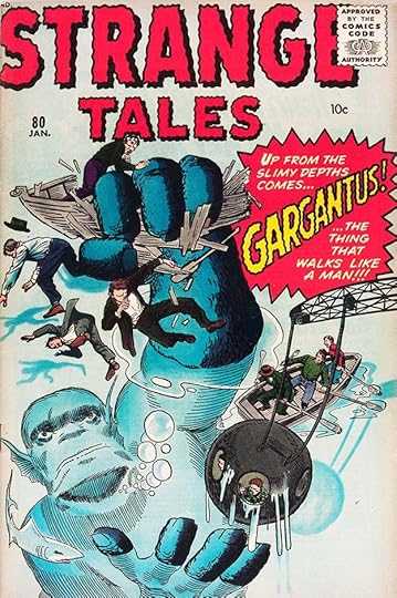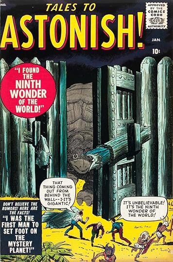 For the third issue, the logo is outlined rather than solid letters, as most comics logos are, to work against any kind of background art, though here only a new subtitle, “The Greatest Comic Magazine in the World!!” is behind it, a good example of Stan Lee’s over-the-top enthusiastic promotion of the new line. The lettering is again by Artie. Marvel did not yet have a strong identifying brand, only a tiny MC for Marvel Comics at upper right.