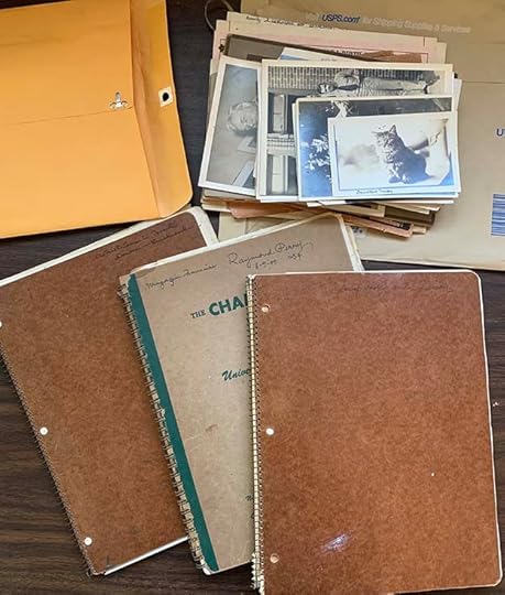 The third notebook is labeled “Scrap Book and Diary,” and has entries from 1955 to 1960, the year of Perry’s death. There are only a few pages of hand-written diary entries like this one, most pages are pasted-on newspaper clippings, things that interested him, from poems to articles about artists and writers, art images, news of the day, quotes from famous people, and a few postcards and notes from friends. There are also several pages of snapshots by Ray of DC staffers, I’ll be getting to that shortly. This first page begins: