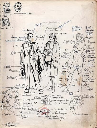 These two pages are pencil layouts and inked drawings used as diagrams for French names for parts of the body and clothing.