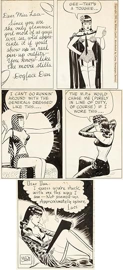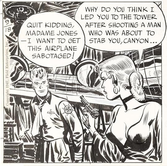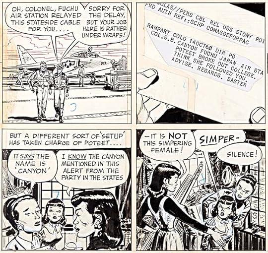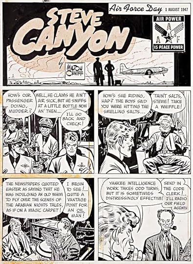 By 1946, Milton Caniff had become unhappy with TERRY, and started a new strip where he had more creative control, STEVE CANYON, featuring an Air Force pilot. The first strip appeared Jan 13, 1947, and continued for several decades with fine Engli lettering in the same styles he’d used on TERRY.