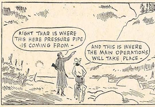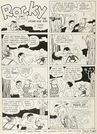 The second strip, LOOKING BACK, also about prehistoric people, ran from December 30, 1945 to May 25, 1947. I’ve split it in half to show the lettering better.