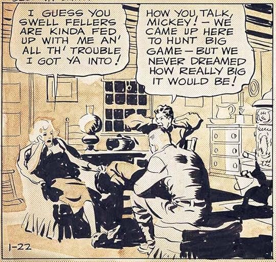 I found some original Dailies at the Heritage Auction site. This one must be from the first week, where the characters were being set up. If the strip had sold, these introductory strips might have been run separately in newspapers before the strip joined their regular lineup. I’ve stacked the panels vertically to showcase Gaspar’s fine lettering.