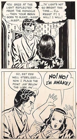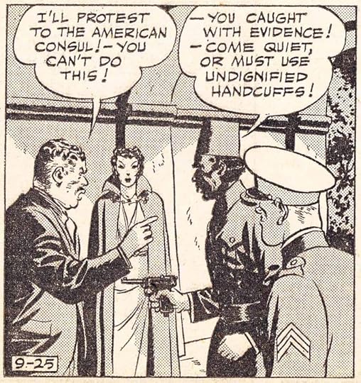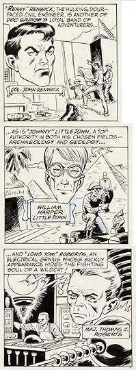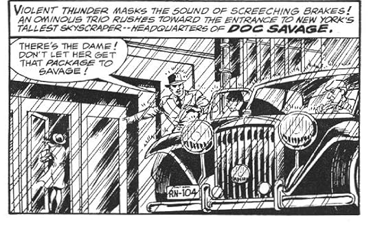 The usual plan for new strip ideas submitted to syndicates who might buy them was to create one Sunday strip and at least a week of six Daily strips, though two or three weeks was more common. I found the Doc Savage Sunday at THIS site, but it has each panel scanned individually. This is panel 3 with some excellent Saladino title and text lettering.