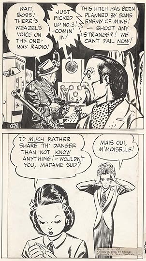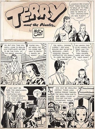 In the Hurd interview, Engli recalls that when Caniff started TERRY, “I happened to be one of the first guys to write and congratulate him. I had no thought of a possible job in mind so I was pleasantly surprised a couple of months later when he got in touch with me and asked if I’d like to do the lettering on the strip. Thus began our association. Milt and Noel Sickles and I worked in a small studio in the Daily News building for a time.”