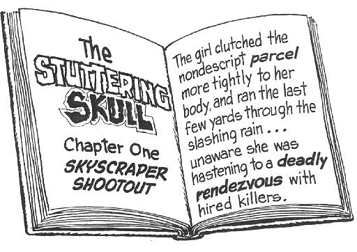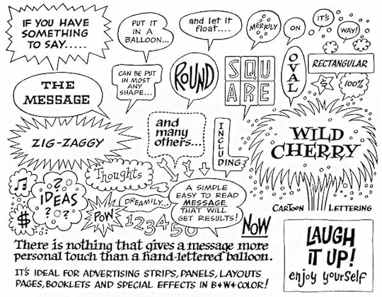 I use the Esterbrook Probate Stub pen #313 on all balloon lettering and the C-Series flat chisel edge Speedball pens for heavier stuff. When I start with a new pen, in order to get the oil off, I stick it in my mouth, lick it a few times, dip it into some water and wipe it off. When the oil is off, a little of the ink will dry on the pen, and this coating will help hold the ink better on succeeding dips. By the way, even though these 313s are theoretically all the same, they do vary — sometimes you pick one up and you can’t get to first base with it — it scratches the wrong way or something like that — and the best thing is to throw it away. Naturally, the same thing is true of all pens. I use the standard black Higgins ink and buy it in the large bottle size. I then fill one of the regular small-size bottles from which I work. Every once in a while I wash out the small-size bottle, clean it thoroughly and then fill it fresh so that I’m not picking up a lot of sediment on my pen point each time I dip in. The pen I use gives the lettering a certain dark weight, and because of the way I space it, it’s nice and strong when the reader looks at it. Individual letters in a word never touch. The spaces between lines of lettering are about one third the height of the lettering and I never measure guidelines with a ruler. They are done by sight only, with a T-square. In this way I’m varying the height of the lines very slightly, and I also vary the height of the individual words a very little bit. All this is done deliberately to keep away from the precise hard, cold type in the rest of the newspaper. I also leave plenty of air space between the balloon outline and the lettering. I prefer straight balloon tails pointing at the speaker’s mouth or head — not too far away. I don’t use curved, limp or wiggly lines for balloon tails, incidentally. I guess all cartoonists are aware of the fact that you use differently-shaped balloons when indicating a voice coming from a radio or a telephone, etc., and that yelling and emphasis can be shown with underlined or heavy lettering. Once, as an experiment, I reduced a panel I had lettered to postage stamp size, and I was delighted to see that I could still read the balloons clearly. Milt draws, and I letter, for 1/2 reduction, and we work on Strathmore medium three-ply paper using the rougher side of the sheets. I stay away from a plate finish in all my work because the pen slides too much and I require excellent control. I use a pen point about a week — sometimes two weeks. I flex the pen upside down, and if the thin hair line between the two sides of the point stays open, the pen is too old and I throw it away. I have to think about things like the humidity too because that affects your paper and your ink. Lettering always heavies up in humid weather. If you can hear your pen scratch on the paper, then you know the paper is right and that it’s nice and crisp and hasn’t been affected by too much humidity.
