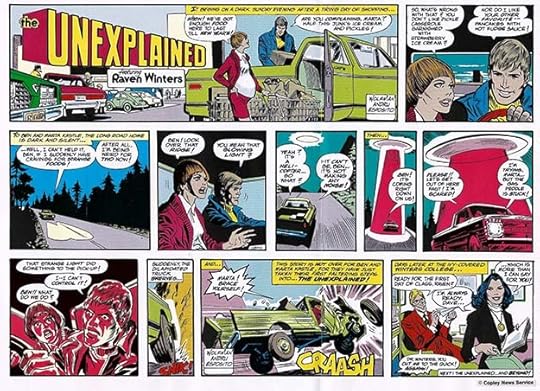 The other strip from 1979 seems like an action/horror one with a fine lineup of creators: writer Marv Wolfman and artists Ross Andru and Mike Esposito, all successful in comics for many years. In a 2020 tweet, Marv said the strip was sold to Copley, and this Sunday and three weeks of Dailies were prepared, as well as a promotional poster, but not enough newspapers were willing to buy the feature to make it financially feasible, so it went no further. The images I found are probably from the syndicate’s promotional package that would have gone out to prospective buyers at newspapers across the country.