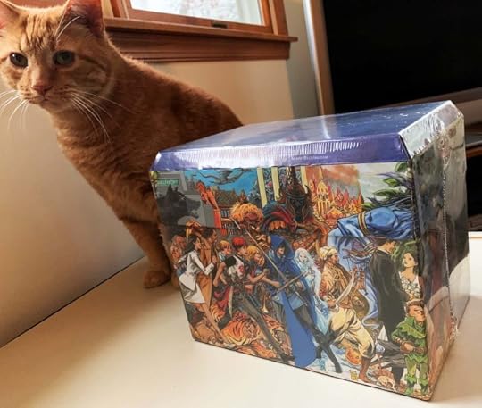 Three large, heavy boxes arrived yesterday, each containing one of these unusual box sets of the complete FABLES saga (issues 1-150 plus specials and spinoffs). Inside the wraparound panorama art by Mark Buckingham and lift-off lid are the four large trade paperback collections issued last year. If you don’t have the FABLES series yet (I do), this is a handsome way to get them. Not cheap, list price is $240, but I see Amazon is already offering pre-orders at $216, link below. Should be available Feb 28th.