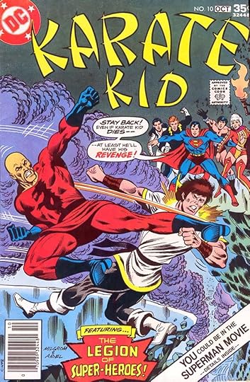 This article features four DC Comics titles beginning with the letter K that didn’t have enough Gaspar Saladino involvement to warrant a separate article. Most of his work is cover lettering, but there are two stories inside the books as well. The series above was a spinoff from The Legion of Super-Heroes that ran 15 issues from 1976 to 1978. Gaspar lettered three covers, the first is above. The burst at the bottom is an odd shape, and the lettering in it seems a bit small, but it works fine.