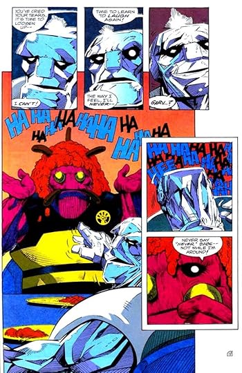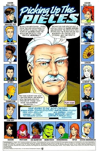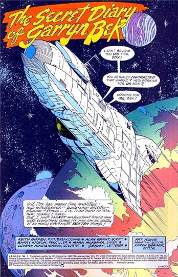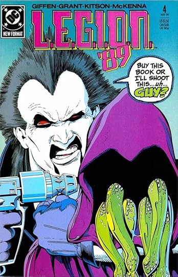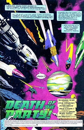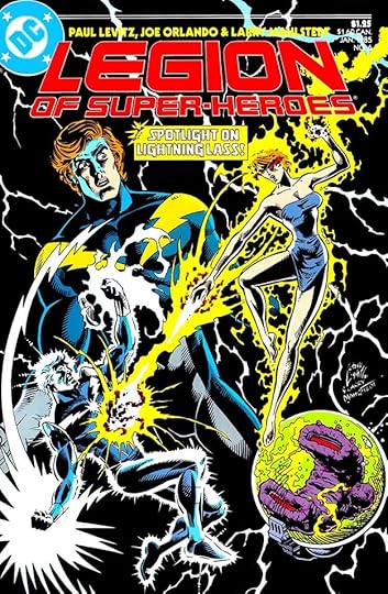 This Legion of Super-Heroes spinoff ran from 1989 to 1994. The title changed with each year of publication just to make things more difficult for indexers like me, but the numbering was maintained throughout, which is helpful. Those letters and periods are a pain to type, too. By this time, Gaspar Saladino was not lettering many covers, and he did only a few for the series, but he did letter nearly all the stories, so this was a main source of income for him in these years. The balloon on the cover above is full of Saladino style and energy.